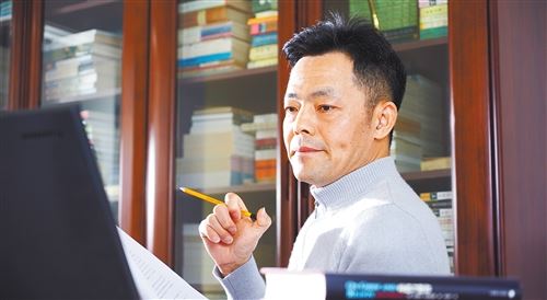 倪学礼在创作剧本。经济日报·中国经济网记者 梁剑箫摄