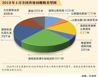 5月24日,中央纪委党风政风监督室公布了4月份全国查处违反中央八项规定精神问题汇总表,共查处问题3922起,处理5759人,给予党纪政务处分3991人,其中查处违规发放津补贴或福利问题961起,处理1588人,给予党纪政务处分1069人。