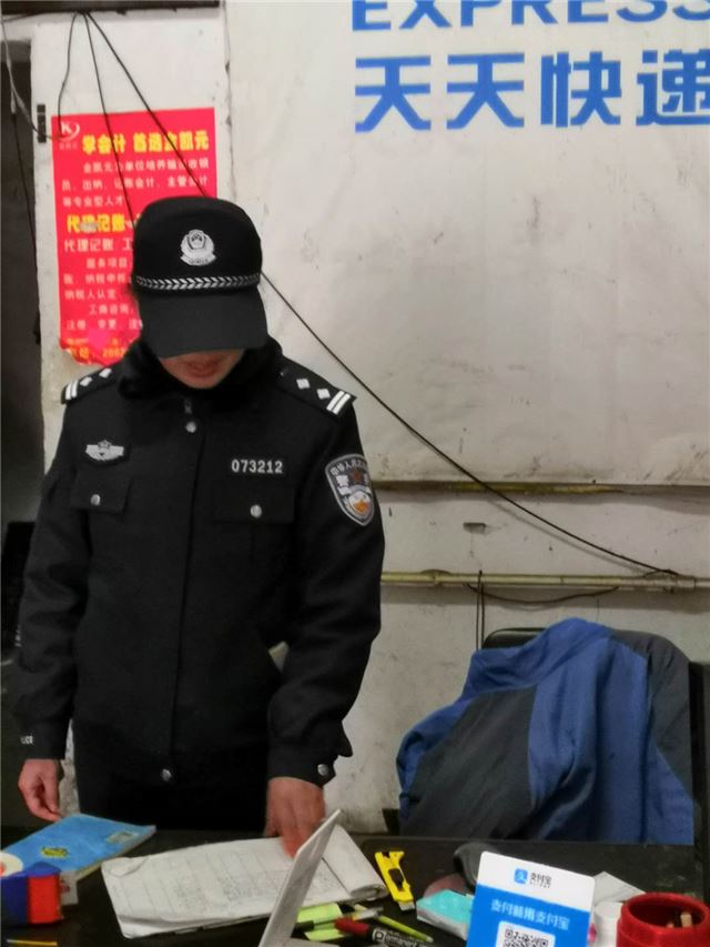 检查过程中,民警重点检查快递人员证件是否齐全,邮递物品是否认真登记,是否存在邮寄管制刀具、枪支弹药、剧毒化学品等禁止邮寄物品,监控设备是否正常运行等工作开展情况。