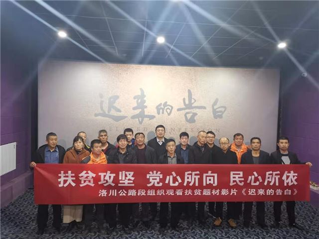 10月23日,洛川公路管理段组织干部职工观看了由国务院扶贫办与中央广播电视总台联合录制的《攻坚的力量——2019年全国脱贫攻坚奖特别节目》以及扶贫题材电影《迟来的告白》。
