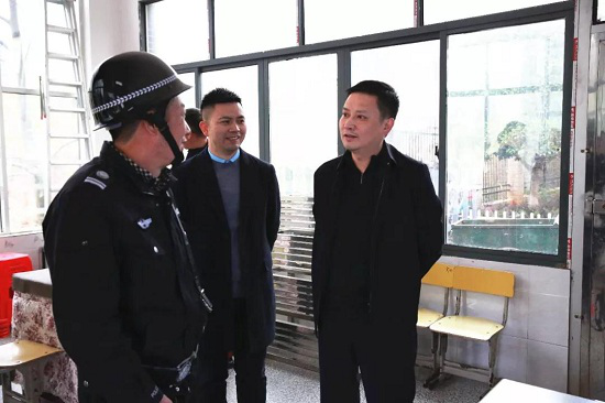 11月25日下午,湖南省邵东市人民政府副市长、市公安局党委书记、局长谢伟宏采取“四不两直”的方式,深入到昭阳小学、大禾塘街道办同意村辅警工作站、市人民医院、公园社区等地,调研督导校园安全、重点人员管控、道路交通等安全稳控工作。市局指挥中心、治安大队、督察大队、反恐大队、交警大队等局属单位负责人陪同调研督导。