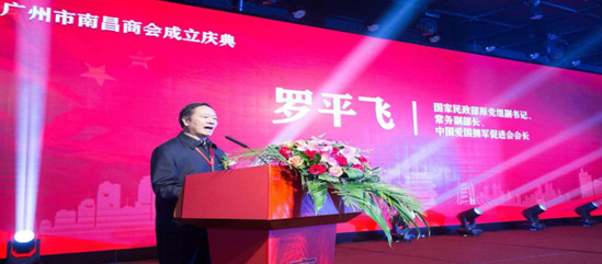 国家民政部原常务副部长、中国爱国拥军促进会会长罗平飞在致辞中对广州市江西南昌商会的成立表示祝贺。希望商会当好“娘家人”,架好“连心桥”,打造南昌对外交流合作的新平台。并为商会赠送了一幅亲笔书写的牌匾。