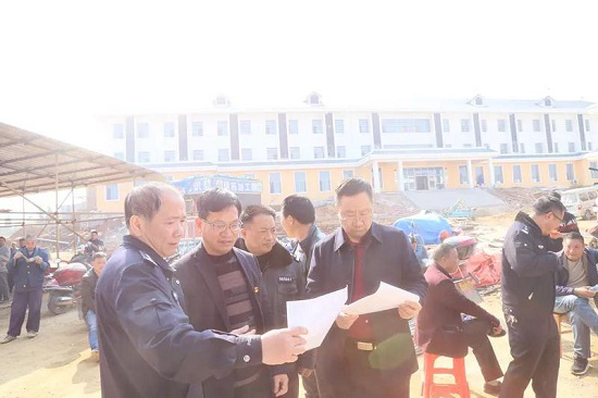 12月11日,湖南省隆回县委副书记、县长刘军在副县长、县公安局长申松能,副县级干部、县公安局政委黎军等陪同下,来到县“三所一队”第一期强制隔离戒毒所建设项目督导调研进度情况。