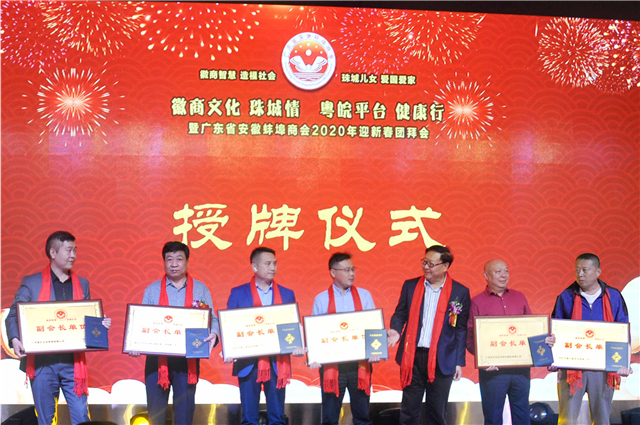 颁发了“广东省安徽蚌埠商会执行会长单位”牌匾