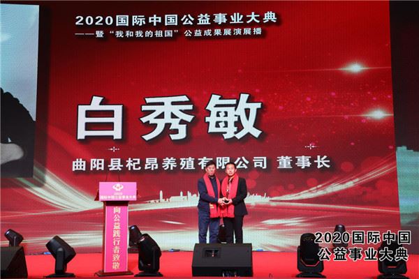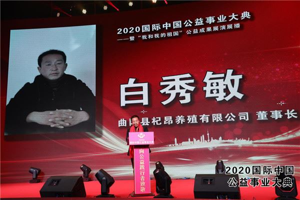 2020国际中国公益事业大典白秀敏董事长接受颁奖