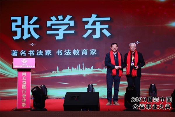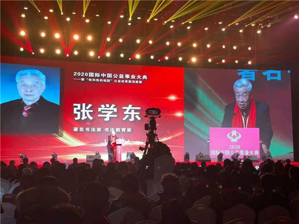 善行中国、让爱傳承。1月8-10日,2020国际中国公益事业大典在北京中央电视广播总台·星光影视基地演播大厅隆重举行。当天,来自公益企业家、书画艺术家、慈善家、公益明星、资深媒体人和政界官员等800余人参加本次盛典。娃哈哈集团、修正药业集团、北京控股集团、北大荒米业集团、广东东鹏控股、一汽解放汽车、四川省慈善总会。著名书法家张学东老师受邀出席并被部委领导亲自授予我和我的祖国“2019年度国际中国艺坛领军人物”荣誉称号。