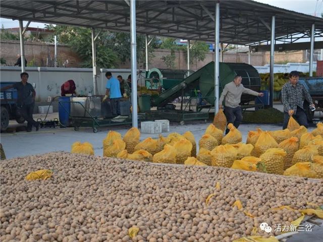 据统计,三岔镇今年大约可以收获核桃鲜果16000余吨。为了促进核桃产业发展,三岔镇积极扶持村集体、合作社和个人发展核桃脱皮、烘干、销售产业5家,四条梁村党支部创办的圣地红专业合作社核桃烘干厂是其中的典型代表。