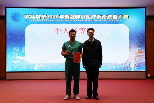 为进一步做好全市秋冬季疫情防控常态化工作,规范新冠肺炎医疗救治工作流程及操作技能,提升重大传染病医疗救治能力与水平,11月7日—8日,由驻马店市卫健体委、驻马店市总工会联合主办,驻马店市中心医院承办的“驻马店市2020年新冠肺炎医疗救治技能竞赛”在驻马店市中心医院圆满落幕。经过两天激烈的比赛,驻马店市中心医院荣获团体一等奖,市中心医院重症医学科主治医师张珂荣获个人特等奖,市中心医院急诊科主治医师郭宗尚及RICU副主任医师甘文云荣获个人一等奖。