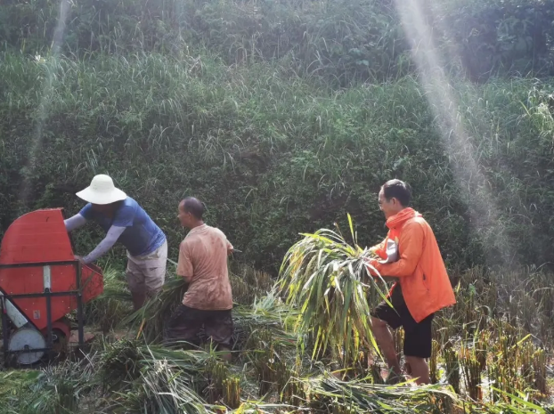 驻村帮扶工作队帮助贫困户抢收稻谷