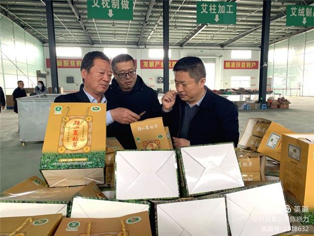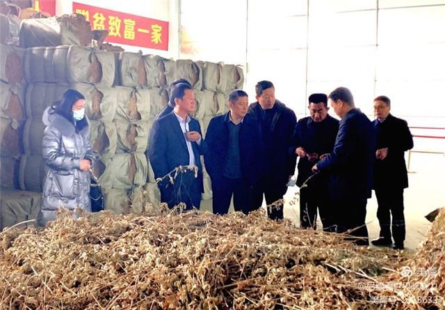图2工行驻马店分行分管领导深入确山县某中药企业察看中药产品加工销售情况。