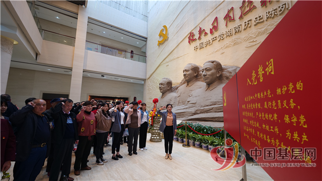 走进湖南党史陈列馆展厅,映入眼帘的是名为“潇湘魂”的毛泽东、刘少奇、任弼时伟人的雕像,塑像亲切、伟岸,敬仰之情油然而生。面对革命伟人塑像,在党旗下,大家举起右手,紧握拳头,重温入党誓词,在掷地有声的誓言中,再一次感受到作为党员的荣耀、使命和责任。