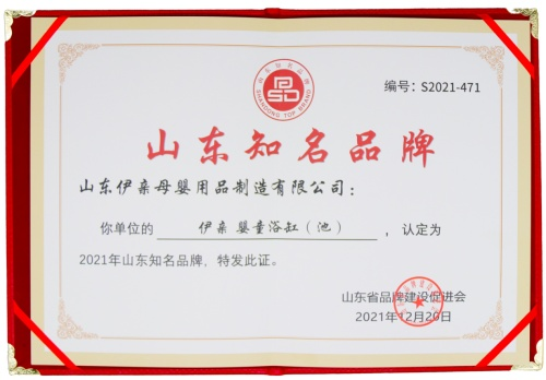 近日,山东省品牌建设促进会发布《2021年度山东知名品牌认定公告》,根据《山东知名品牌认定管理办法》的规定,经组织申报、资格审查、大数据挖掘、系统平台评审、专家评审等环节,伊亲婴童游泳池系列产品荣获2021年度山东知名品牌。