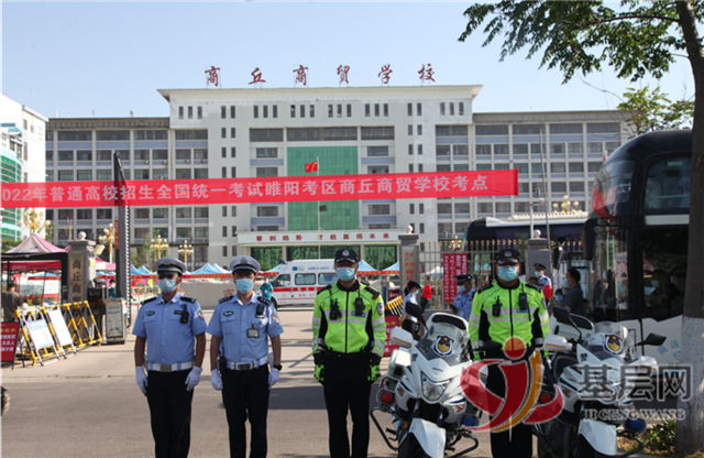 中国基层网商丘讯 (图/文 王宝玉 王豪杰) 今天,是2022年全国高考第一天,在这个特殊的日子里,为确保今年高考顺利进行,商丘市公安局交警支队按照前期部署,精心组织、狠抓落实,采取有力措施,加强考点周围路段的秩序疏导,保障考生的交通安全,全力为考生保驾护航。