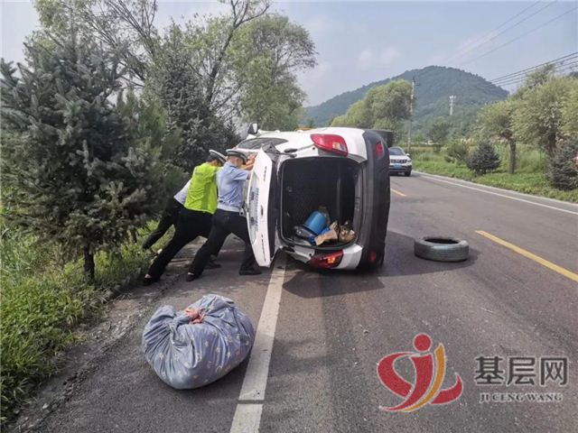 中国基层网讯:8月1日早,黄陵交警大队腰坪中队民警在辖区巡逻执勤时,在店头镇段家湾处发现一辆小车侧翻在路面上,民警立即上前查看情况,发现车内无人员受伤,中队民警紧急处置现场,对现场路面进行管控,并积极联系救援车辆对事故车辆进行救援。