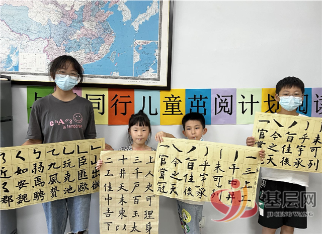 中国基层网郑州讯(图/文 杨洋 朱艳辉)书法是中华民族特有的艺术形式,也是中国传统文化的重要组成部分。为了能够培养儿童青少年的兴趣、爱好、特长并增加孩子们的课外知识,扩大求知,给爱好书法的儿童青少年一个良好的学习环境,提升社区儿童青少年的文化素养。8月6日在二七区侯寨街道办事处、台郭社区居委会支持下,德惠社工邀请书法大师李广仁老师于二七区台郭社区党群服务中心活动室开展"墨韵书香、快乐成长”书法兴趣课堂。