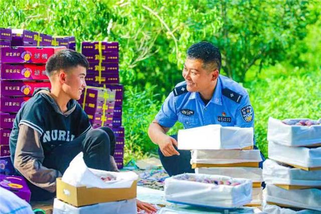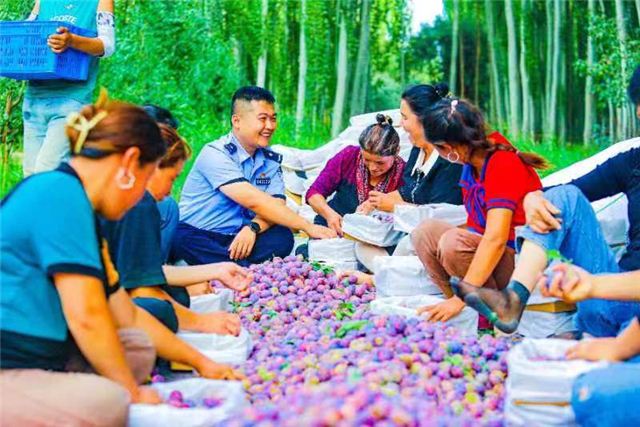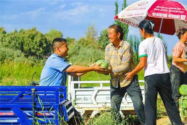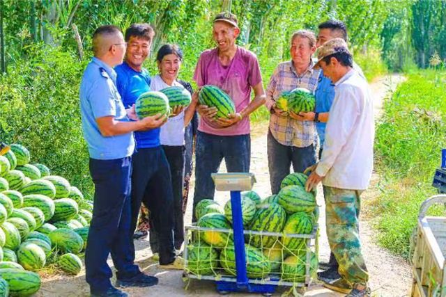 近日,新疆维吾尔自治区克孜勒苏柯尔克孜自治州阿图什市哈拉峻乡进入丰收时节,辖区西瓜、西梅迎来了销售旺季。2023年9月1日,新疆出入境边防检查总站克州边境管理支队哈拉峻边境派出所民警结合农忙时节特点,主动深入田间地头,帮助村民采摘瓜果,并为正在采摘装运西瓜、西梅的村民送上安全。