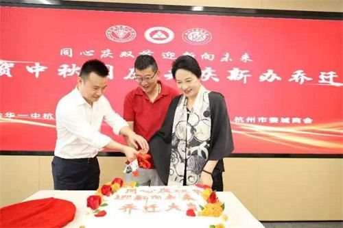 在中秋佳节来临之际,杭州西溪湖畔秋风送爽,宾客盈门。“同心庆双节,迎新向未来”同贺中秋国庆、共庆杭州金华商会、杭州市婺城商会、金华一中杭州校友会新办乔迁仪式正在杭州西溪印新商会办公大楼隆重举行。120余名来自杭金地区的政府领导、工商界翘楚、知名人士、热心乡贤及兄弟商会代表如约相聚,共叙乡情,共绘商会发展的宏伟蓝图。