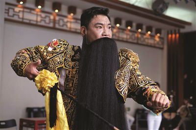 穿上戏服、挂上髯口,随着鼓点响起,屠洪刚在排练厅里开始了一招一式……进入角色的他又变身成了京剧舞台上的西楚霸王项羽。一开腔还真完全看不出他已经34年没有登上过京剧舞台了。