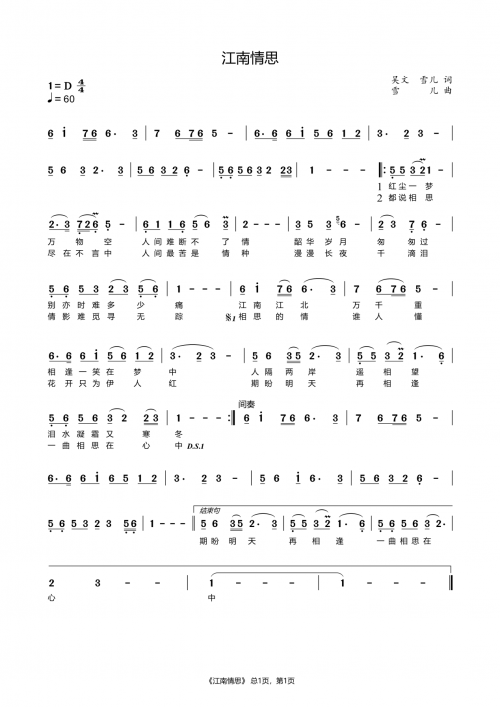 袁雪儿《江南情思》简谱