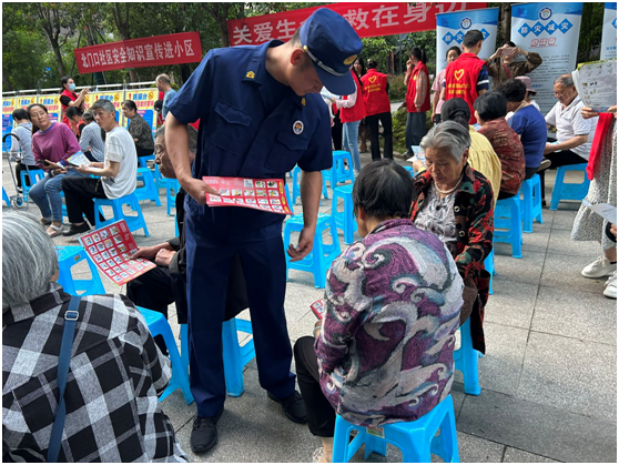 5月6日,隆昌市减灾委员会办公室、市应急局、市消防救援大队、古湖街道在紫云府小区开展防灾减灾宣传进社区、进家庭活动。