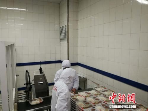 生产车间内工作人员在分拣盒饭。 中新网记者 张尼 摄