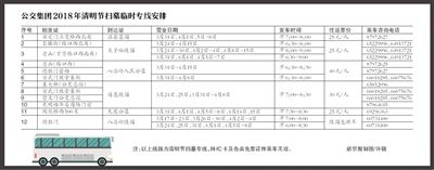 交通部门相关负责人介绍,在地面公交方面,客流高峰日来临时开通的重大墓区的扫墓专线,会提前向社会告知。同时,各大墓地周边各大旅游景点也将保障运力充足。