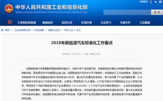 3月27日,工信部装备工业司发布了《2018年新能源汽车标准化工作要点》,提出2018年新能源汽车标准化工作的总体思路,今年工作重点将从加快促进新能源汽车产业提质增效、增强核心竞争力、实现高质量发展出发,突出抓好重点标准领域和关键标准项目,着力优化新能源汽车标准体系建设,加强国际标准法规的参与和协调,支撑汽车产业供给侧结构性改革,推动新能源汽车高质量健康可持续发展。