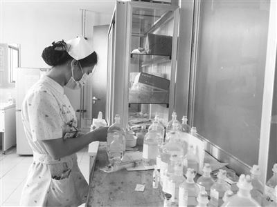 海医第二附属医院肿瘤科护士为患者配药