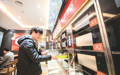 事实上,“互联网+餐饮”早已不是送外卖这么简单。近日,青岛一家“智慧餐厅”的开业吸引了当地市民的目光。顾客只需在办公室通过扫码或者使用“智慧餐厅”手机应用就可以点餐,系统还会利用大数据技术推荐顾客喜欢的食物。下单后大约10分钟,顾客就会收到一条带有柜号和取餐码的短信,以便到密码柜取餐。
