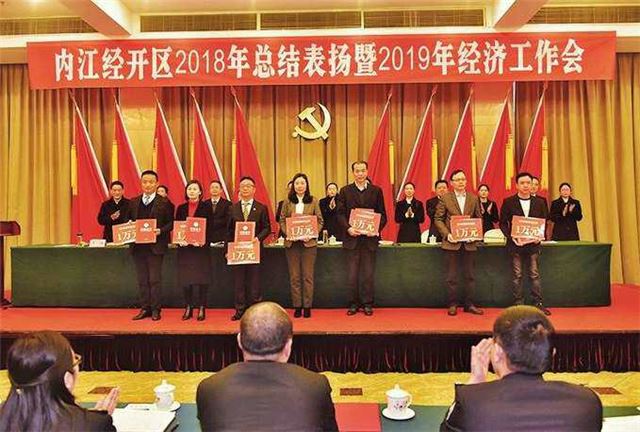 2019年2月1日,四川内江经开区召开2018年总结表扬暨2019年经济工作会,传达中央、省、市经济工作会议精神,回顾总结内江经开区2013年升级国家级经济技术开发区以来的工作,安排部署2019年重点工作,表扬2018年度综合目标考核一等奖单位,以及2018年度考核优秀公务员、2018年度考核优秀事业干部、优秀“甜城英才”、2018年度先进个人代表等52名先进个人,内江市人大常委会副主任、经开区党工委书记陈伟全参加。