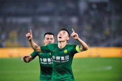 上轮中超联赛,于大宝与李可(左)双双破门,后者若想登上亚冠赛场,国安必须先打赢今晚的“生死战”。新京报记者 吴江 摄