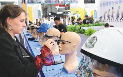 6月11日,第五届亚洲消费电子展在上海新国际博览中心开幕,包括5G、人工智能、增强现实/虚拟现实和汽车技术等相关领域的最新电子科技创新技术成果在展会期间集中呈现。图为外国观众在体验AR智能眼镜。