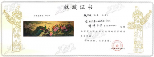图:天安门地区管理委员会收藏证书