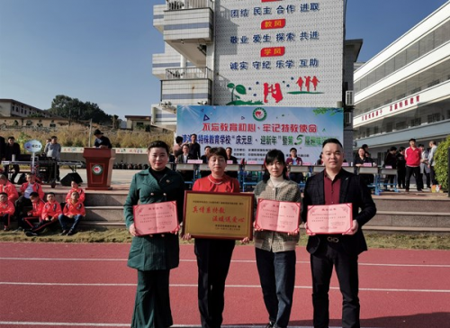 图:漳浦县特殊教育学校向爱心单位颁发荣誉证书