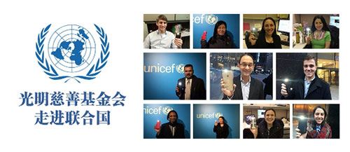 光明慈善基金会在联合国启动的公益活动—举起手机照亮世界关爱自闭症儿童