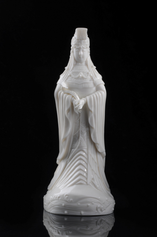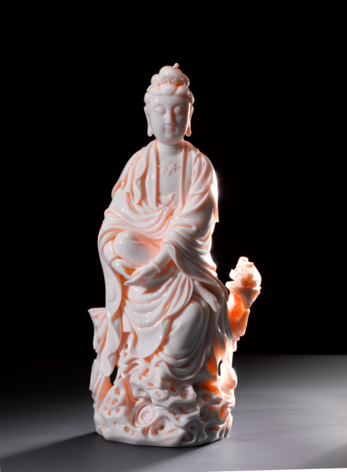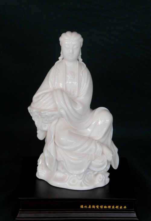 如今,“孩儿红”“猪油白”“象牙白”以及另一种白瓷“玉雪白”已被李建水申请了商标。2013年,瓷塑《妈祖》荣获中国工艺美术“百花奖”金奖;《坐岩观音》瓷塑荣获第八届中国海峡工艺品博览会银奖,2017年,实心“孩儿红”作品《坐岩观音》入藏中国国家博物馆。