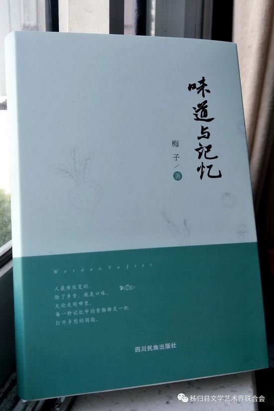 梅子,本名秦晓梅,秭归县作家协会主席。《味道与记忆》是作者出版的第三部散文集,共收录64篇文章,分“味道“与“记忆“两部分,前者着笔于秭归地方美食的有味书写,后者留恋于童年家乡美食的记忆,用文学的方式记录了秭归的美食传统,饮食风习。本书是宜昌市委宣传部及秭归县委宣传部的文艺精品扶持项目。有作家评价:味道与记忆,最终落实到一个美字。所写的食物食材美,食物生长的环境美,加工的过程美,描绘的语言美。生动,俏皮,富有韵味,是一本少见的写宜昌本土饮食文化的散文集。