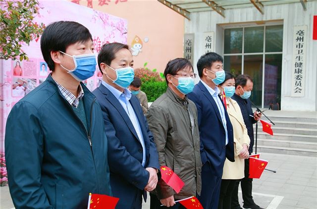 上午11点,在我院华佗广场为援鄂勇士举行欢迎仪式,亳州市谯城区副区长杨荔、谯城区卫健委主任马杰出席亳州援鄂医疗队凯旋欢迎仪式并致辞,院长王海燕主持欢迎仪式。