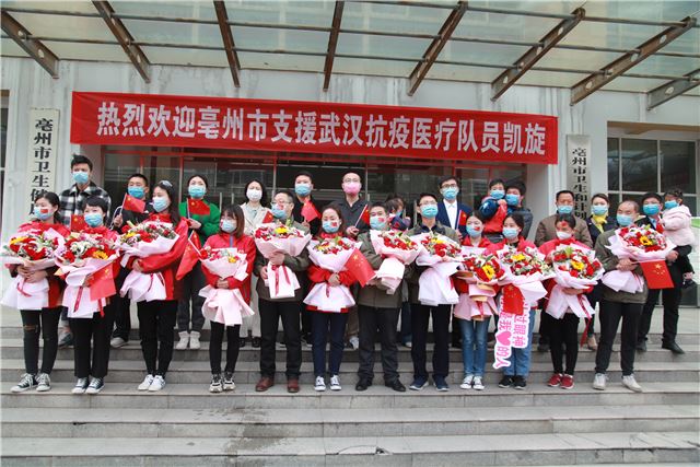 终于等到你!亳州市卫健委院内为平安归来的援鄂医疗队员举行了欢迎仪式,并送去鲜花和掌声。