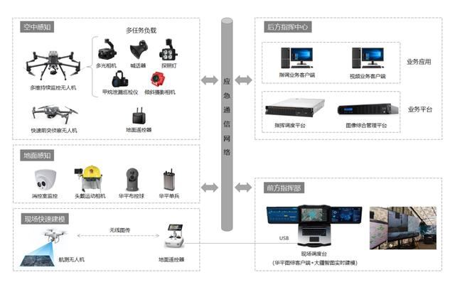 地面布署的图像采集设备为救援工作提供信息基础,而无人机空中多维度视角让救援指挥更有针对性。空中全局信息与地面点位画面相结合,为指挥中心对研判救援风险、高效科学制定救灾策略提供重要信息支撑。