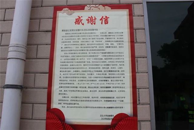 店头红军小学领导表示:锦旗虽小,情义无价,锦旗凝聚着学校和警队浓浓的渔水之情。学校对中队长期以来“护学岗”民警们夏天顶着烈日,冬天冒风雪,每天风雨不误,不辞劳苦,按时按点在学校周边维护、疏导交通秩序,为师生保驾护航,致以由衷的谢意。