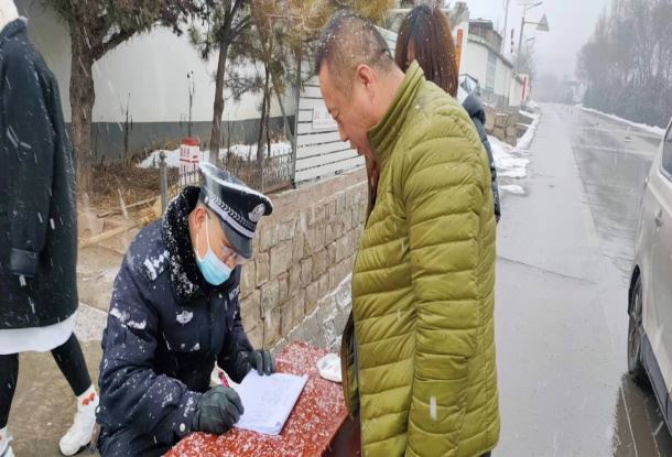 庚子年初,一场新冠肺炎疫情席卷神州大地,疫情就是命令,防控就是责任,高度的政治责任感和强烈的党员使命感,推动着他全力以赴地投入到这场没有硝烟的疫情防控阻击战中,疫情不退,警察不退,他逆风而行放弃春节假期与家人团聚,一心扑在疫情防控的第一线,检查进入辖区车辆、登记外来人员、宣传疫情防控知识、在疫情防控点执勤,配合相关部门调查外来人员,顶风冒雪,昼夜作战,维护着辖区群众的安全,被群众称赞为“群众的守护神”。最长的一次他30多天没有回家一趟,虽然家和所里的直线距离不超过10公里,但是他心里装着百姓这个“大家”,自己的小家已经无暇顾及。为了疫情防控他每天坚持在岗18个小时,熬红了双眼,累弯了腰,屹立雪中,雪水湿透了衣裳,寒风中冻成了坚硬的“硬甲”,这是向疫情宣战公安战士的“盔甲”,更是防控疫情保护百姓生命安全的“盾牌”。