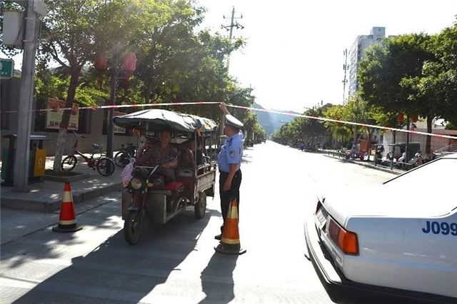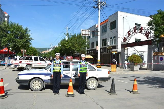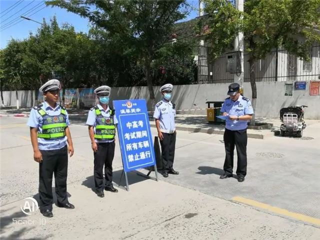 高考期间,城区执勤中队民(辅)警严格按照上级领导方案部署要求,不顾酷暑天气,提前到岗,拉起警戒带,摆放“高考区域禁止车辆通行、严禁鸣笛、请勿喧哗”等警示牌,合理引导社会车辆分流、绕行减轻考场周边交通压力,同时加大对辖区各考点周边道路的巡逻管控力度,确保城区道路畅通有序。