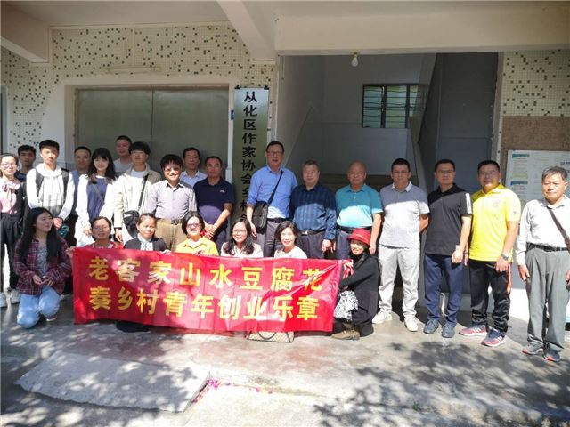 11月7日上午,从化区作协部分会员与广州城建职业学院部分师生一行20余人,驱车来到位于大山深处的温泉镇密石村“老客家山水豆腐花”生产基地,为企业发展出谋划策,为从化区美丽乡村建设助力。