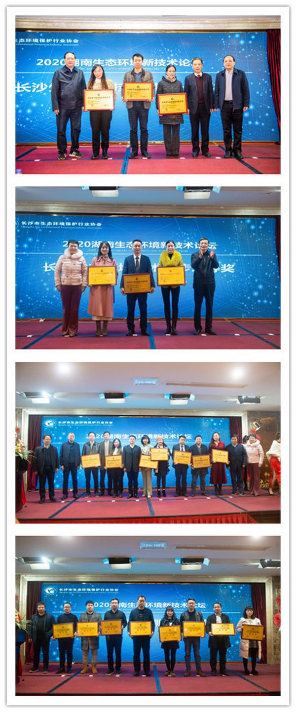 长沙市生态环境保护行业协会获2020湖南榜样公益社团奖;刘军亮获2020湖南榜样公益人物奖;力合科技(湖南)股份有限公司获湖南榜样公益企业奖,湖南沃邦环保科技有限公司、湖南科美洁环保科技有限公司、湖南三友环保科技有限公司获2020湖南优秀公益企业奖;湖南省环境保护科学研究院、湖南农业大学资源与环境学院、华自科技股份有限公司、湖南三友环保科技有限公司、湖南亿康环保科技有限公司、长沙畅颢环保科技有限公司等单位获长沙市生态环境技术奖由与会领导颁发奖项。