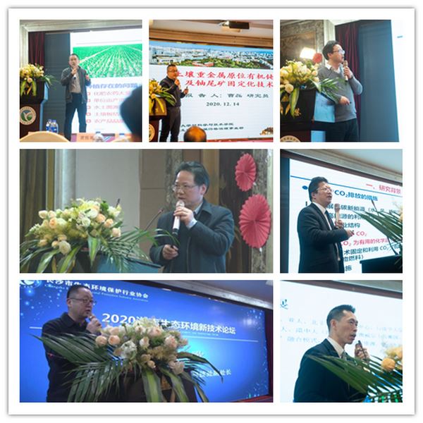湖南师范大学副教授尹佳先生代表印遇龙院士做《种养结合在畜禽养殖污染防控中的作用》主题报告; 中南大学教授、博士生导师,国家重金属污染防治工程技术研究中心副主任刘恢先生作《有色冶炼烟气汞资源化治理新技术》主题报告;湖南大学教授、博士生导师,湖南大学科技研究院院长尹双凤先生作《用于二氧化碳化学固定的新型吸收剂与催化剂》研究报告;湖南省卫生健康委员会监督管理局副局长郭健君先生作《面对新冠肺炎环境监测采样人员如何自我防护》的主题演讲;湖南省科技厅社会发展科技处副处长黄凯歌先生就科技政策向与会企业做出了详细的介绍; 浙江正泰电器股份有限公司市场拓展部经理谭永高先生介绍了《正泰智慧环保解决方案》;兰州大学博士生导师、北京市化工职业病防治院研究员曹磊先生作《土壤重金属原位有机钝化及铀尾矿固定化技术》项目研究报告