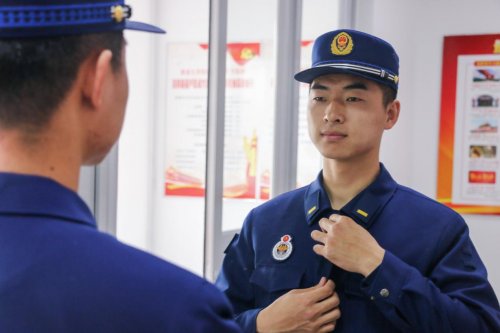 退役在家的胡越看到网上线下都是消防员的招录信息,海报中那句“脱下军装,你可愿再穿战袍”的豪言再次点燃了胡越续写“蓝色”使命的梦想。胡越本想报名参加2019年第二批新消防员招录,但无奈因伤病原因没有成功。但在部队这五年他学会的就是拼搏和坚毅,他积极配合医生治疗,养好了身体,并成功报名参加2020年森林消防员招录。就在参加招录考核前家人还劝胡越:“不要去了,你的身体状态我们真的很担心!”但他没有听从家人的建议,因为他心中始终还有未完成的梦,他来到了吉林森林消防守护他热爱的长白林海。虽然退伍已经一年有余,但他在部队的过往使他很快融入到新训生活。回归新训,让他既激动又倍感压力,激动的是能够重回直线加方块的生活,哨音、集合、训练、学习,一切都是那么熟悉;压力则来自于他对自己的严格要求,入队后第一次主题朗诵活动中他表现出色以及在之后的“新蓝好声音”、“主题春节联欢会”等一系列活动主持让他成为新训大队的小名人。但过往的成绩不能作为当下的资本,大队第一次摸底测试成绩出来,胡越只排到了中游水平。