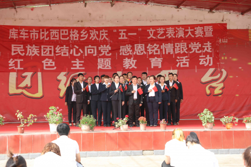 为隆重纪念五一国际劳动节和五四青年节,庆祝中国共产党建党100周年,结合党史学习教育,大力开展文化润疆工程,2021年5月4日,比西巴格乡在文化站开展欢庆“五一”文艺汇演活动暨民族团结心向党 感恩铭情跟党走”红色主题教育活动,比西巴格乡党委副书记、副乡长、宣传干事阿布来提·巴拉提同志出席活动并致辞,各村党员代表、群众代表、驻村工作队员等观看了此次演出。
