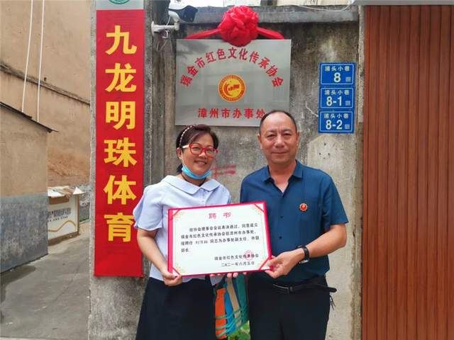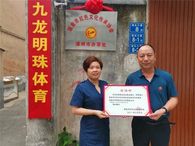 图:瑞金市红色文化传承协会委任周菊香(左)为漳州市办事处主任