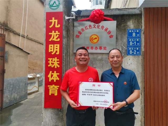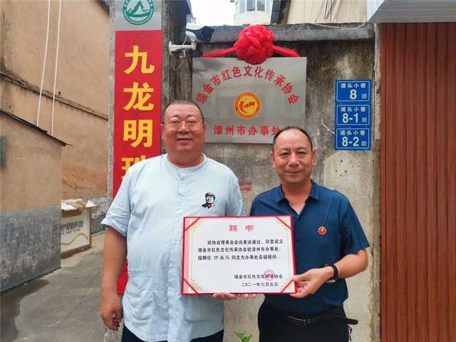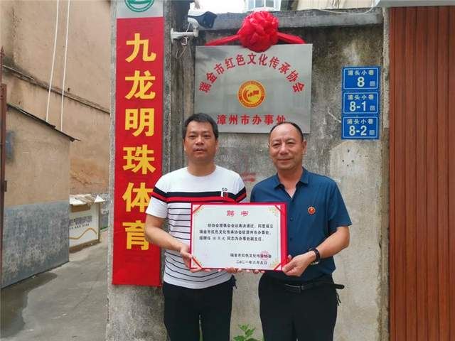 图:瑞金市红色文化传承协会委任陈昆建(左)为漳州市办事处副主任
